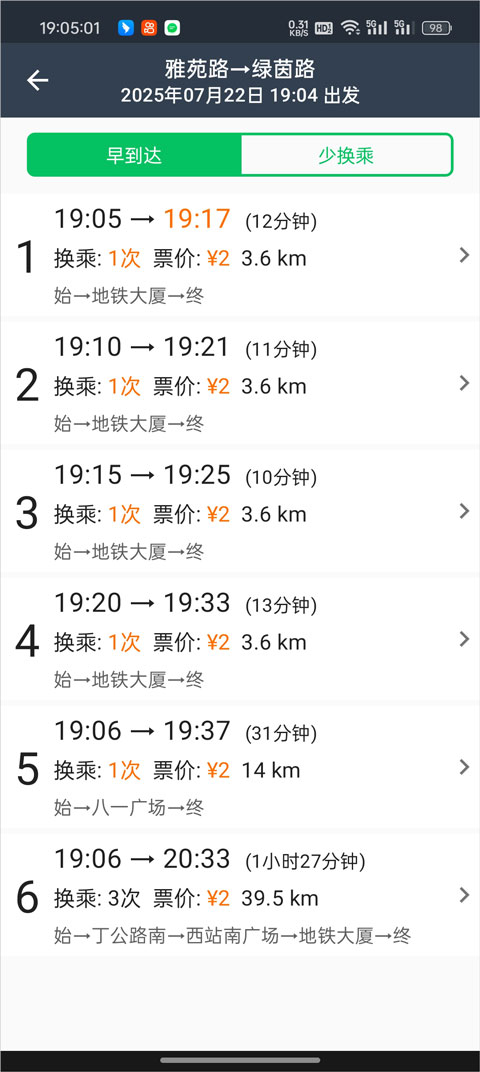 4、提供准确的换乘方案,包括乘车时间、最早和最晚出发时间提醒