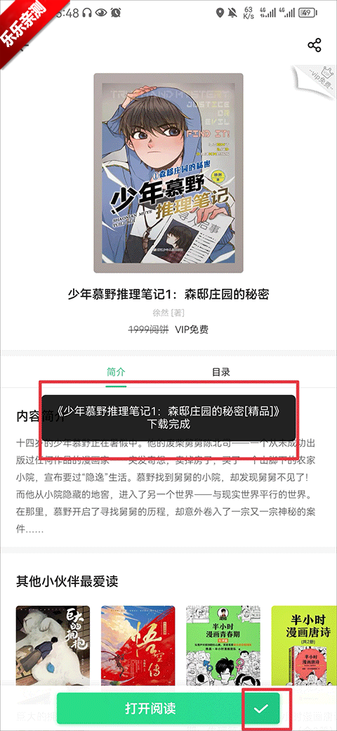 2、进入后点击书籍进入详情界面