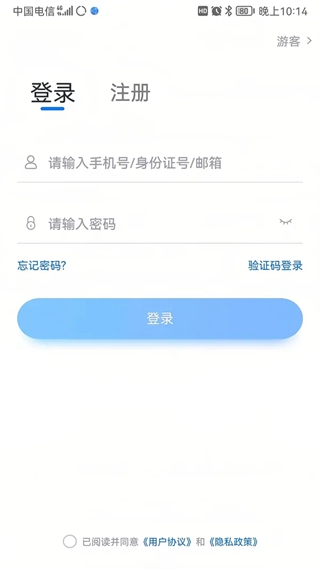进入登录页,使用手机号/身份证号/邮箱和密码即可登录,身份证号登录必须是后续完成考生身份认证方可使用,身份证号必须为考生本人身份证号。