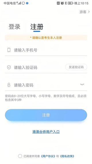 港澳台侨及国际用户请点击注册页下方【港澳台侨及国际用户入口】进行注册。