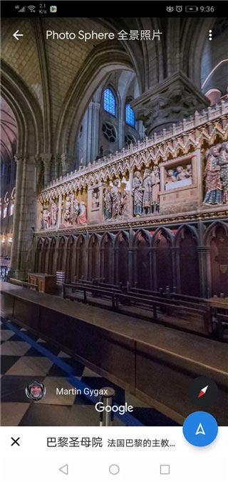 3、例如在搜索框内搜索巴黎圣母院,就能够以鸟瞰的视角查看它的全貌,即使是当地的游客都没有这么好的观察视角。