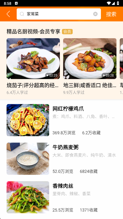 2、以家常菜为例,进入后就可以看到家常菜单了
