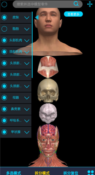 3、【多种模型选择】提供多种模型选择,用户可以根据需要选择不同的解剖模型进行学习。