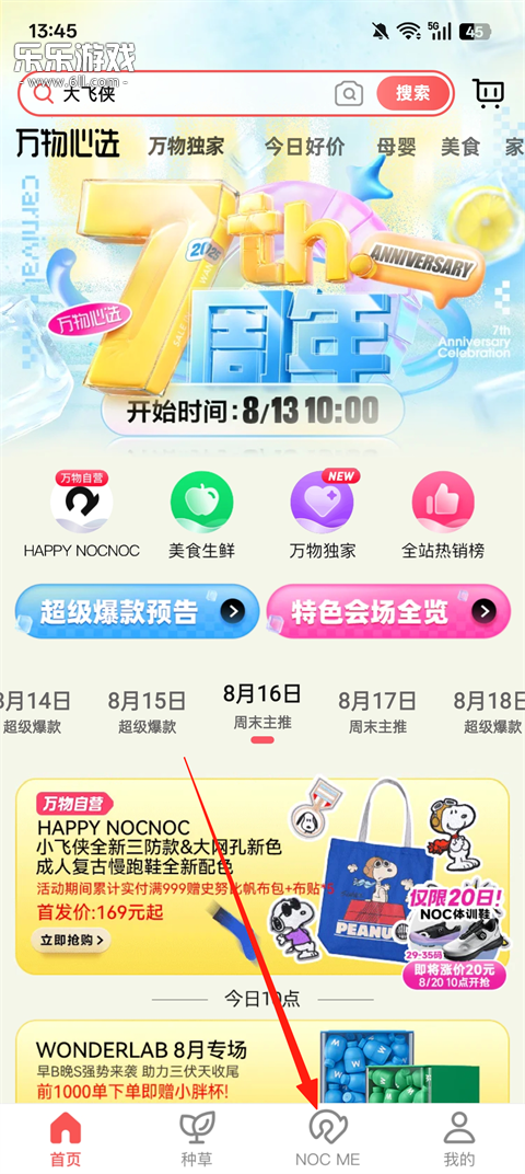1、打开万物心选App,登录之后,点击【NOC ME】