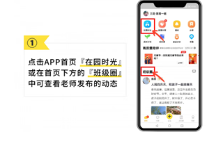 操作方式:在首页点击【在园时光】或【班级圈】查看老师发布的动态,并放入成长册。