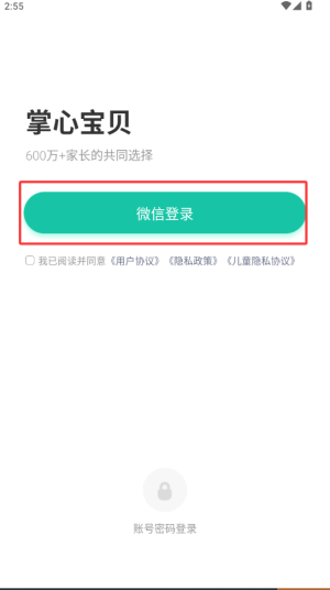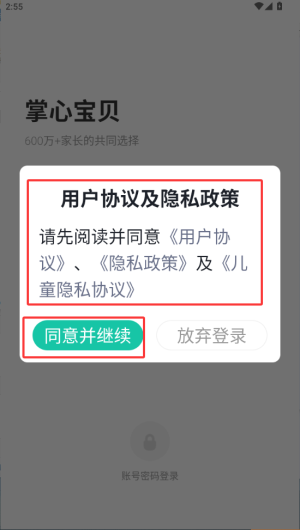 1、启动掌心宝贝应用,阅读用户协议与隐私政策后点选同意。