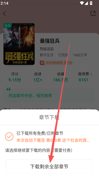 4、已下载部分为免费阅读章节,如果想要看更多的可以在付费开通vip以后进行此项操作。
