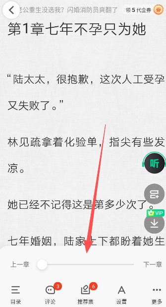 3、之后上滑为到下一章节阅读,下滑是回看之前的内容章节。