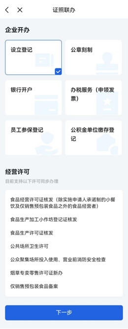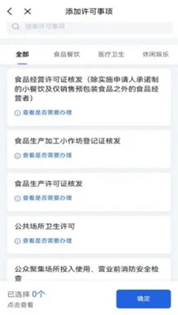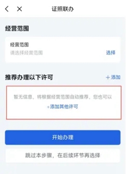 4、选择需要联办的许可事项,也可根据实际经营范围情况办理推荐许可事项。