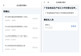6、业务预提交后,需在48小时内完成企业登记确认,完成后业务定时自动提交。企业登记确认列表分为需签名人员和需认证人员,相关人员需下载粤商通根据指引进行刷脸签名或实名认证。