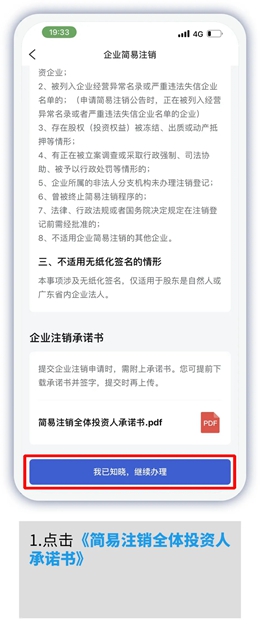 ⑤点击【提交公示】后,信息将自动同步至“国家企业信息信用公示系统”进行公示,公示期为20天。公示期间,企业可于粤商通APP查看公示进度和撤回公示。企业只有1次机会申请简易注销公示,如选择撤销将不能再次进行公示,无法再次办理简易注销登记手续。