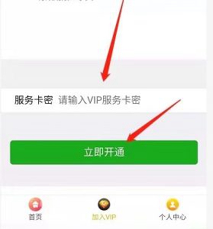 2、点击加入VIP按钮,购买卡密后,复制粘贴卡密,点击立即开通即可使用。