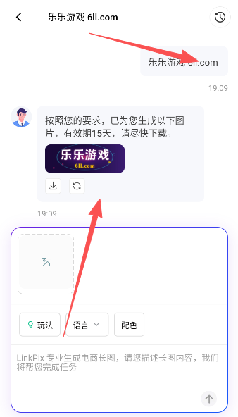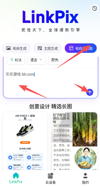 1、在青虎云LinkPix版块,选择电商详情图界面,输入想要生成的海报格式内容部分,并点击发送。