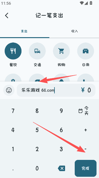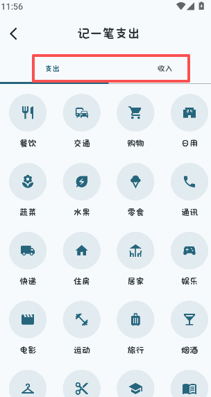 2、选择记录支出或是收入的类型。