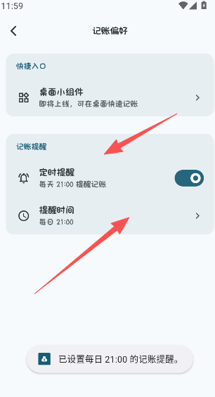 2、设置定时提醒,并添加提醒的具体时间。