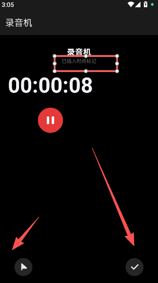 2、坐下方插旗标注用于记录该事件段以内所发生的事项,右下方为录音完成以后的保存选项。