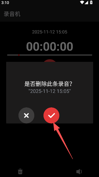 2、点击左下方的删除选项,确认删除当前录音记录。