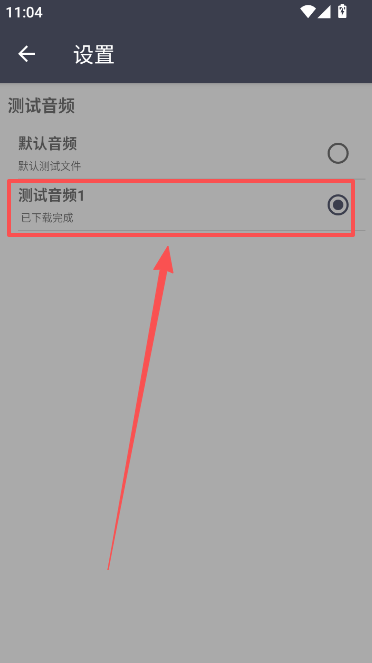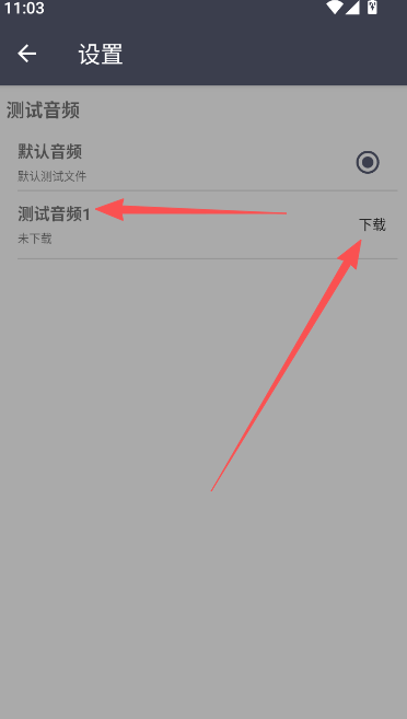 2、点击默认音频文件下方的测试音频1文件,并开始下载。