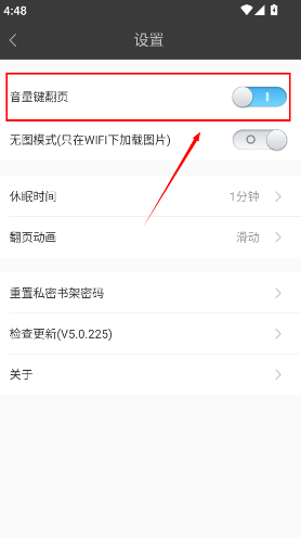 2、然后在设置界面中启动音量键翻页功能即可,如图所示。