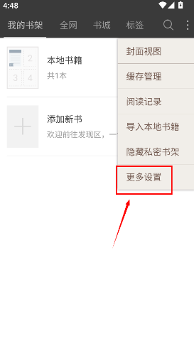 2、接着在弹出的窗口中选项“导入本地图书”,查看设备已有资源文件。