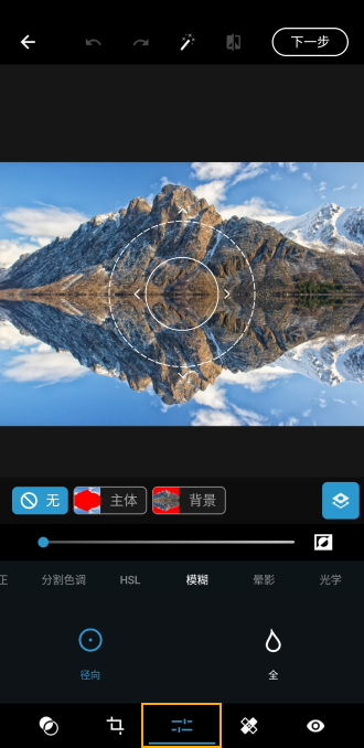 2、移动滑块以调整“模糊”强度。您也可以使用开关更改照片中的模糊区域;