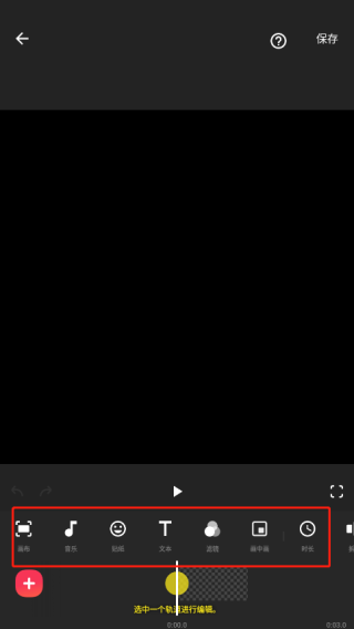 点击视频,导入一个视频,然后进入视频编辑页面,现在就可以对视频进行剪切,调速,添加背景、滤镜、音乐、文字、贴纸等。