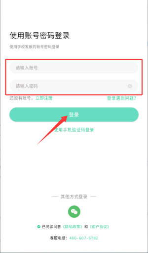 3、于登录页输入学校提供的账号和密码,完成账号登录操作。