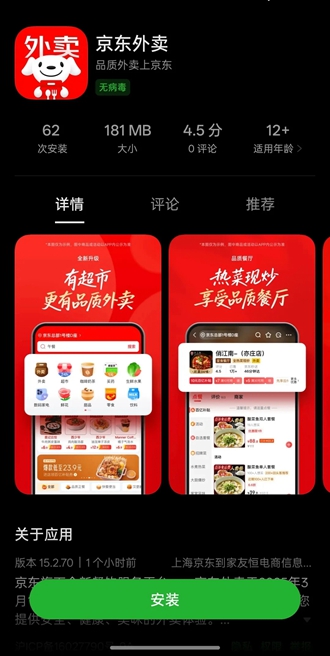 《京东外卖下载下载安装官方正版》独立运营版本上线剥离了原有的京东主app,把外卖业务独立出来一个app,对于用户来说会更加方便,相比较于前期的外卖入口不好找问题也得到良好的解决,除此之外,推出京东点评与京东真榜,为大众提供更真实的用餐点评服务,让大家在就餐之前可以参考其他用户们的真实体验,做出好的判断,从而不会出现上当踩雷的情况出现。