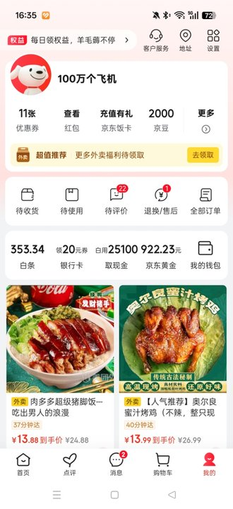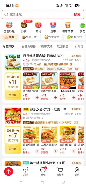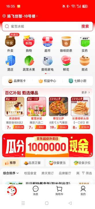 4、首页聚合自营秒送、外卖、购物、超市等核心频道。