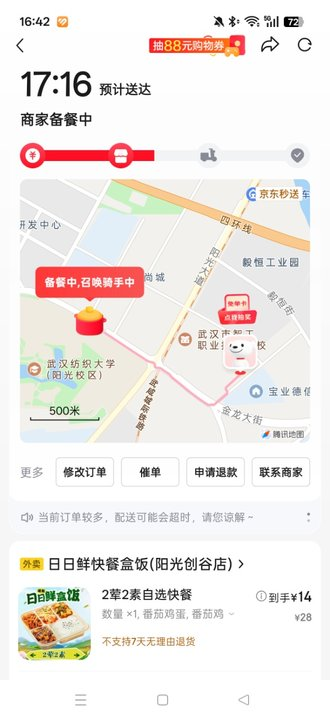 6、支付完成以后,等待商家在预计送达时间内完成订单配送即可。