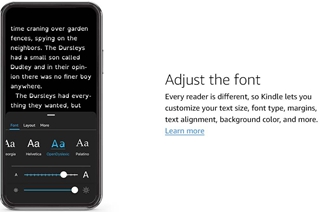 说明:每位读者的阅读习惯都不同,因此Kindle支持你自定义字号、字体类型、页边距、文本对齐方式、背景颜色等多项设置。