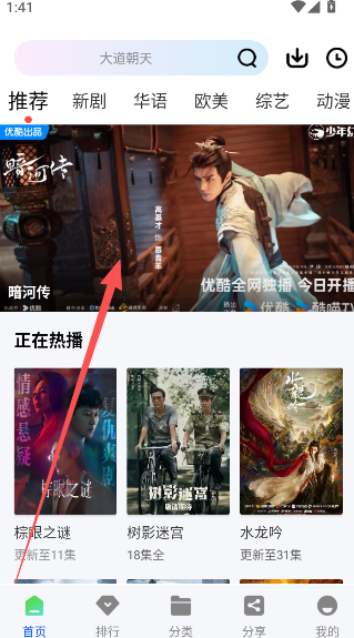 1、下载打开从乐乐游戏下载好的软件,进入首页可以看到许多不同类型的剧集资源,选择你要缓存的点击海报页进入播放界面。