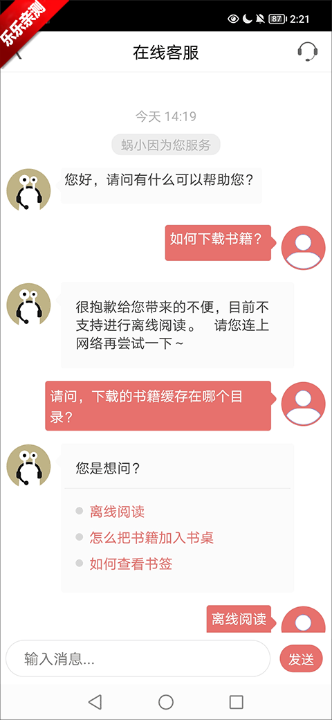 2、在客服界面输入你要问的问题,这里问的问题是“如何下载书籍”;