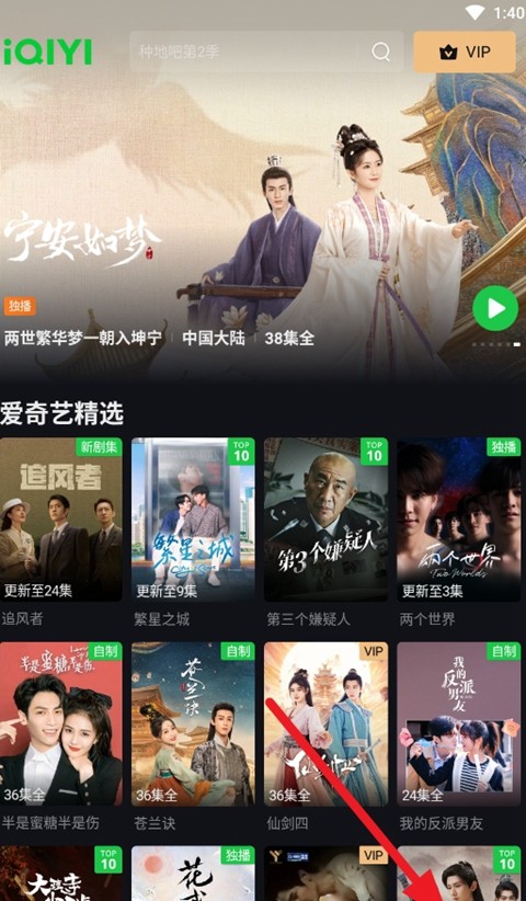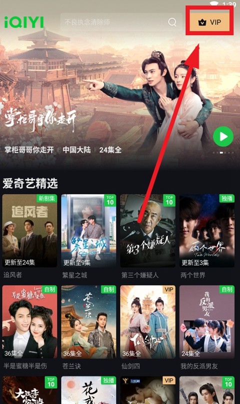 5、注册即登录,点击应用后返回首页,选择软件右上方的vip功能选项。