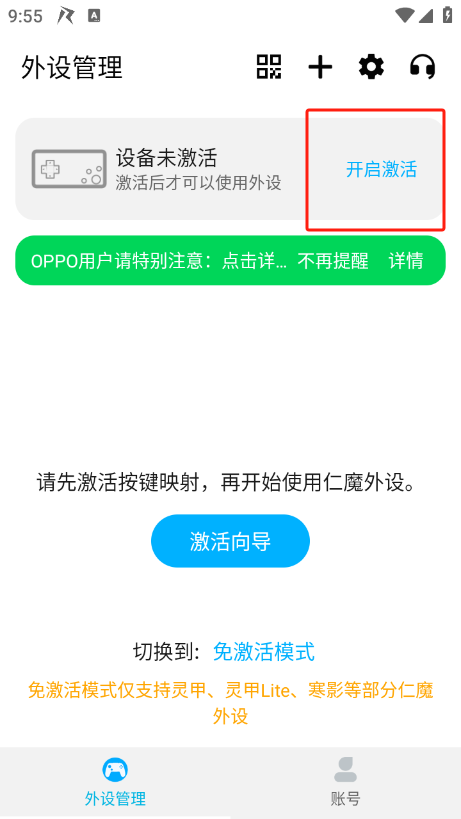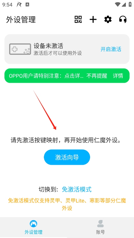 2、进入后点击激活向导,开启按键映射
