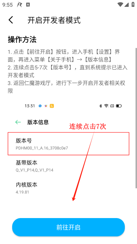 4、然后进入开发者模式,点击前往开启