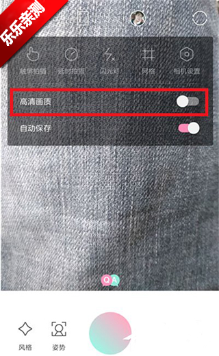 3、点击后会在顶部出现拍照设置的界面,找到【高清画质】选项,默认的是关闭的,点击打开后方的选项;