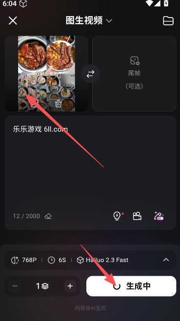 3、在视频生成的内容区输入文字,上方添加图片,点击进行生成操作。