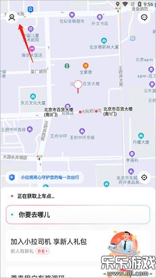 1、打开小拉出行,点击左上角
