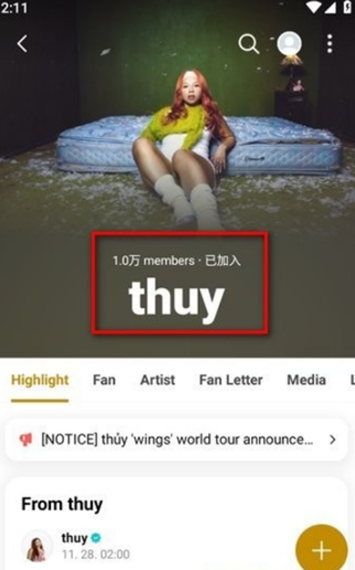 3、比如小编这里比较喜欢thuy,那么自然就是加入了她所在的粉丝社区,能够第一时间知道她的行程安排动态,方便规划自己的应援出行计划。