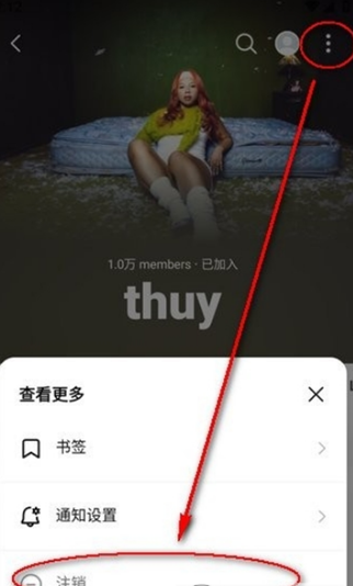 4、如果要取消艺人所在的粉丝社区,就在明星社区界面点击右上角的三个点,进入注销界面,注销也就意味着取消关注,后续任何关于她的消息都不会推送给你。