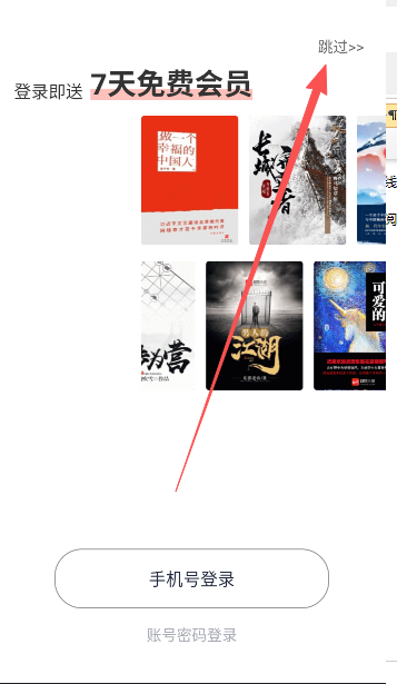 1、新用户登录免费送7天会员,可选择忽略跳过直接进入阅读界面。