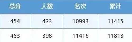 例如:454分对应的人数为423人,而453分为398人,说明454分竞争更激烈,在填报志愿时可能需要适当调整目标院校的层次。