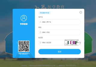 1. 点击“内蒙古继续医学教育”学习平台,平台会弹出登录框,输入学员IC卡号及密码即可登录学习。屏幕左下角为“内蒙医教”APP下载二维码,使用“扫一扫”即可下载。