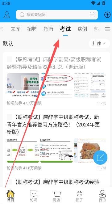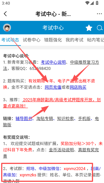 1、新青年麻醉论坛购买副高的题库,可在考试栏目中选择默认排序置顶的页面进入。