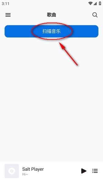 将音乐文件下载到手机中后,打开椒盐音乐,点击“扫描音乐”;