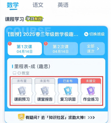 3、课前预习-课堂报告-复习巩固-作业练习,四大核心功能,可根据孩子的学习进度自由选择。