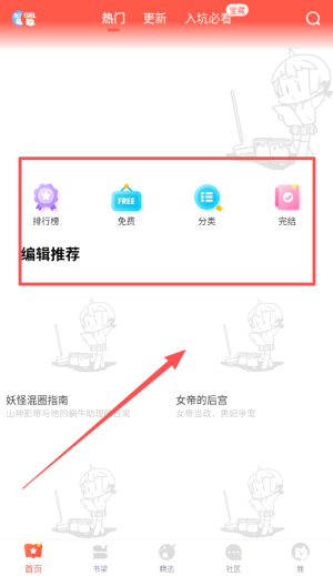 2、首页推荐会每天更新热门漫画下拉可以看到分类榜单和编辑精选帮你快速发现感兴趣的作品。