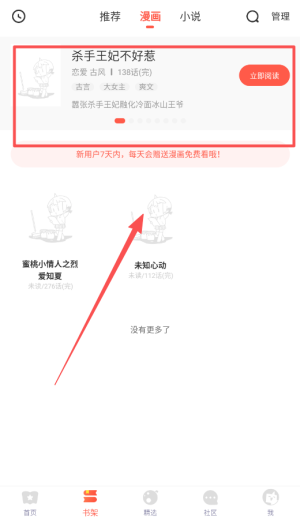 1、专为新加入的漫迷准备的福利,新用户在首个七天内,每天都能领取漫画进行阅读,让你快速融入这个漫画世界