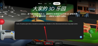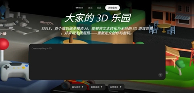 1、seele虚拟AI的构成非常简单,首页先是一段简明的介绍,下面就是一个输入框,供你输入一句话生成2D、3D世界。